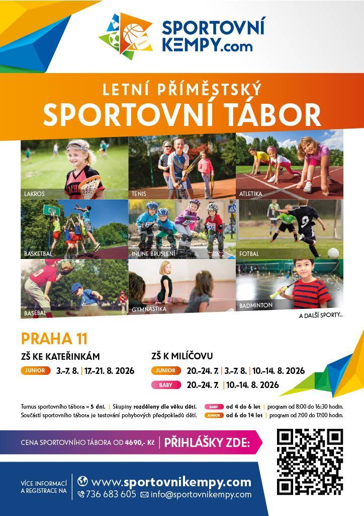 Naše škola bude místem konání vybraných sportovních příměstských táborů pořádaných externí organizací. Základní informace, termíny a kontakty najdete v přiloženém letáku.