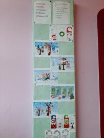 Ve škole na schodišti mezi 1. a 2. patrem budovy C jsem o těchto dvou etwinningových projektech vytvořila nástěnku s Quizy o jednotlivých státech a ukázky Christmas Cards a Door Hangers, tak aby si je mohli prohlédnout i děti a učitelé z jiných tříd.