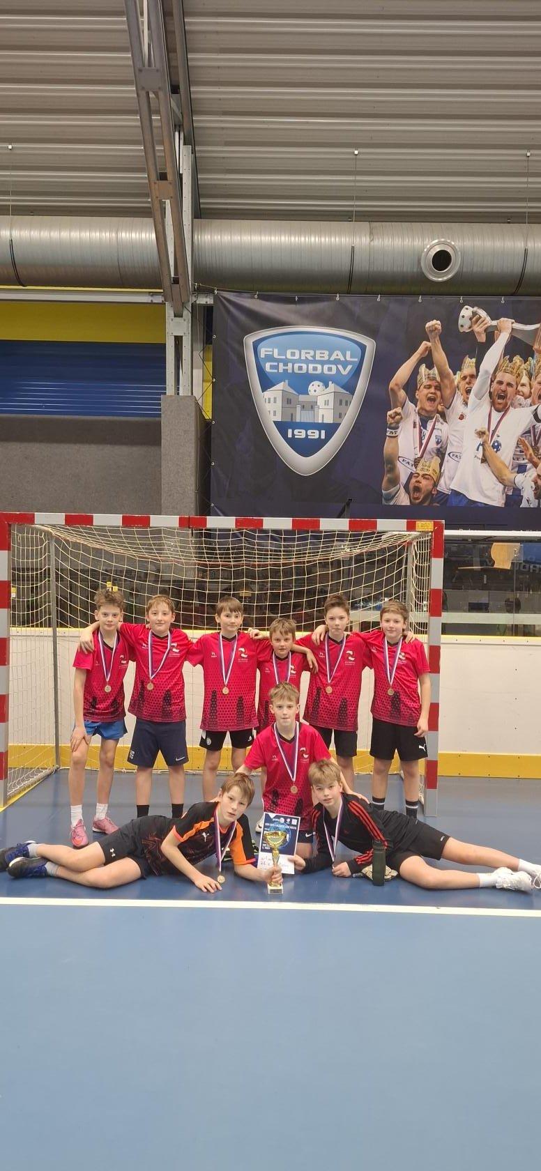 V kategorii žáků 5. ročníků nás reprezentovali Pavel Široký (5.E), Tomáš Kozlík (5.B), Matyáš Mařík (5.B), Jan Křupka (5.D), Patrik Chlup (5.A), Kristián Pavlíček (5.E), Viktor Jarolímek (5.D), David Jeník (5.A) a Tobiáš Konečný (5.E). Tým odehrál celkem šest zápasů a po výborných výkonech postoupil z 1. místa ve skupině do semifinále. V něm si poradil se ZŠ Kateřinky a ve velkém finále se utkal se ZŠ Campanus. Po skvělém výkonu naši hráči finálový zápas vyhráli a zcela zaslouženě si odvezli zlaté medaile i vítězný pohár.
