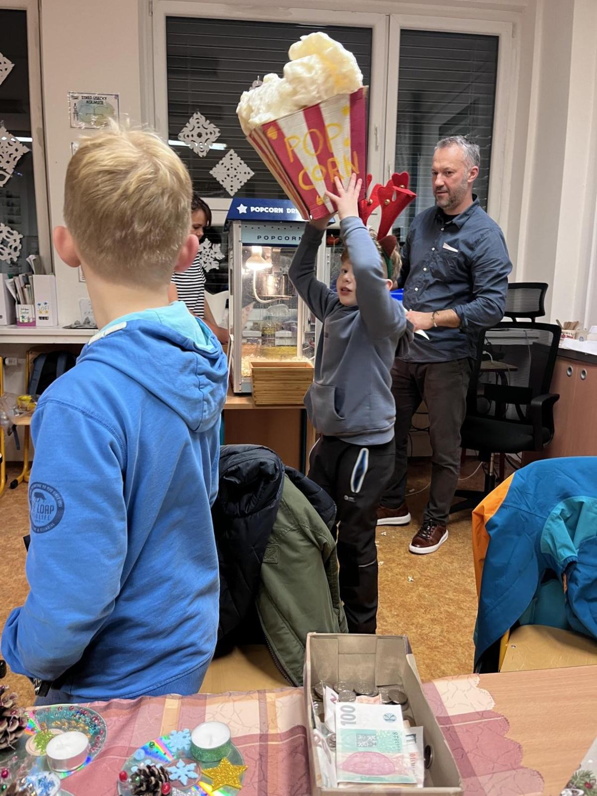 Po úvodním zpěvu se návštěvníci mohli vydat do připravených stánků jednotlivých tříd. Žáci zde nabízeli své ručně vyráběné dekorace, drobné dárky i různé dobroty – například wafle, popcorn či hranolky. Zájem byl opravdu velký a školní chodby se zaplnily do posledního místa.