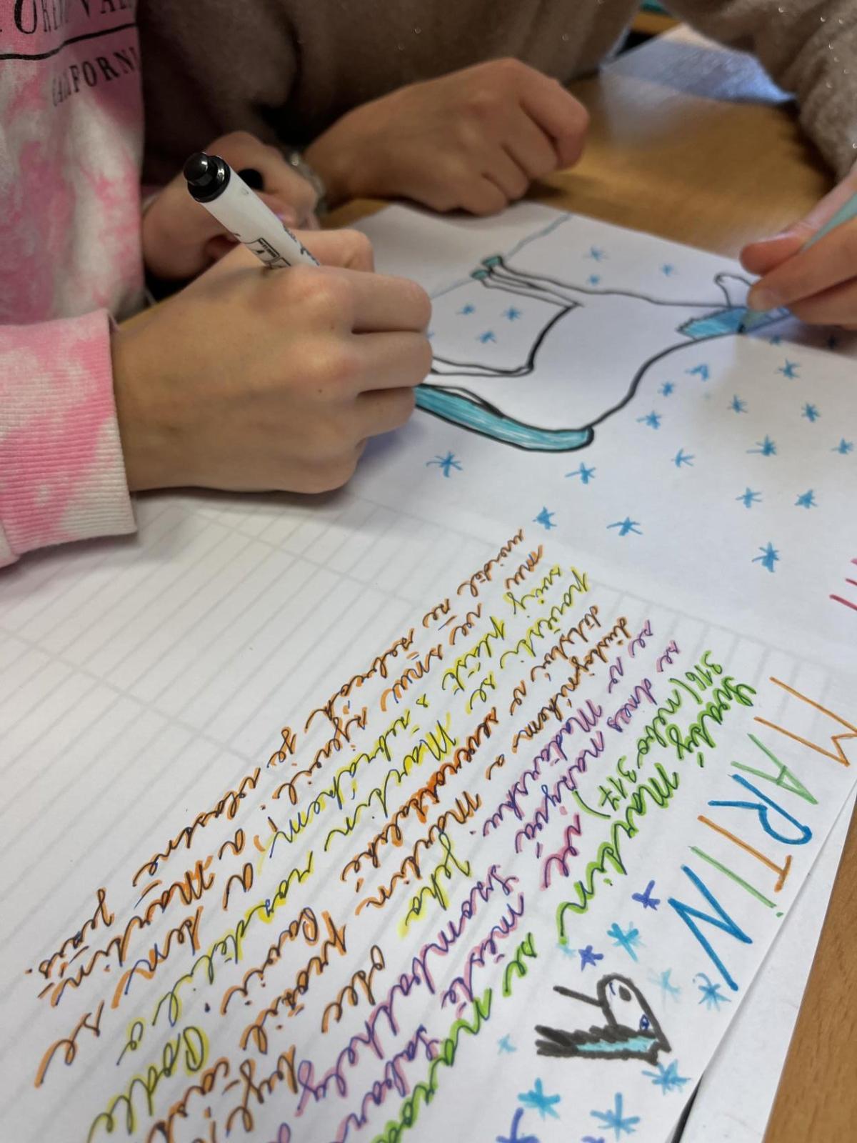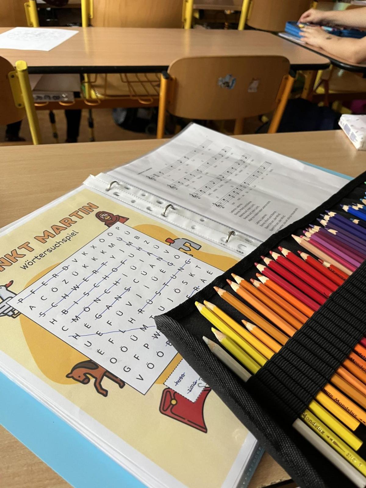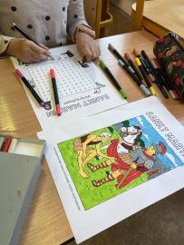 Naše bilingvní třídy měly dopoledne projektový den – malovalo se, luštily se křížovky a spojovačky a nechybělo ani zpívání martinských písniček.