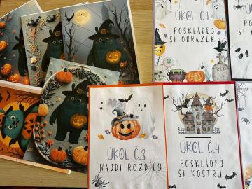 V každé třídě na ně čekala halloweenská dobrodružství. Prvňáčci skládali strašidelné puzzle, stavěli kostru, namotávali pavoučka nebo skládali obrázky s duchy a dýněmi. Některé úkoly vypadaly trochu tajemně, ale děti překonaly všechny obavy a s nadšením se pustily do práce.