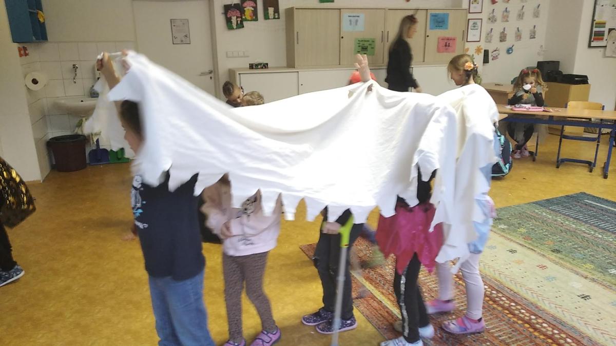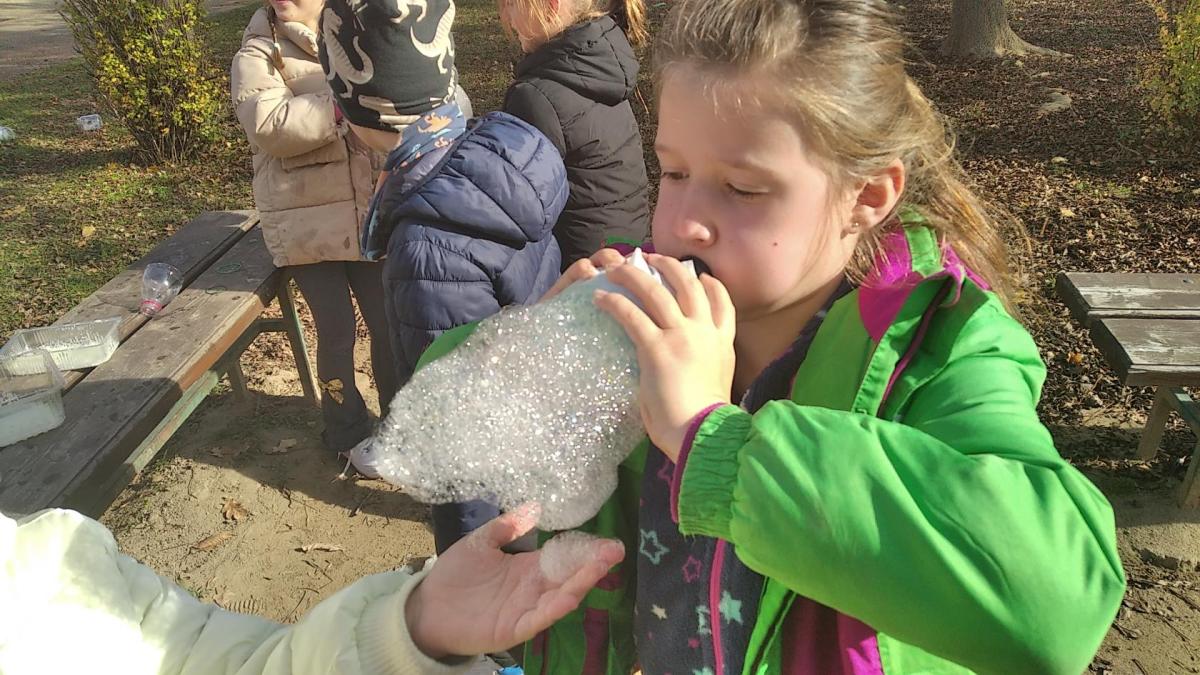 V pátek jsme pokračovali čarodějným pokusem s bublinami. Pověděli jsme si také o tom, že naším tradičním svátkem je Svátek Všech svatých, kdy si připomínáme ty členy rodiny, kteří již zemřeli.