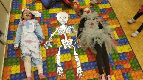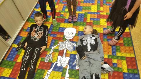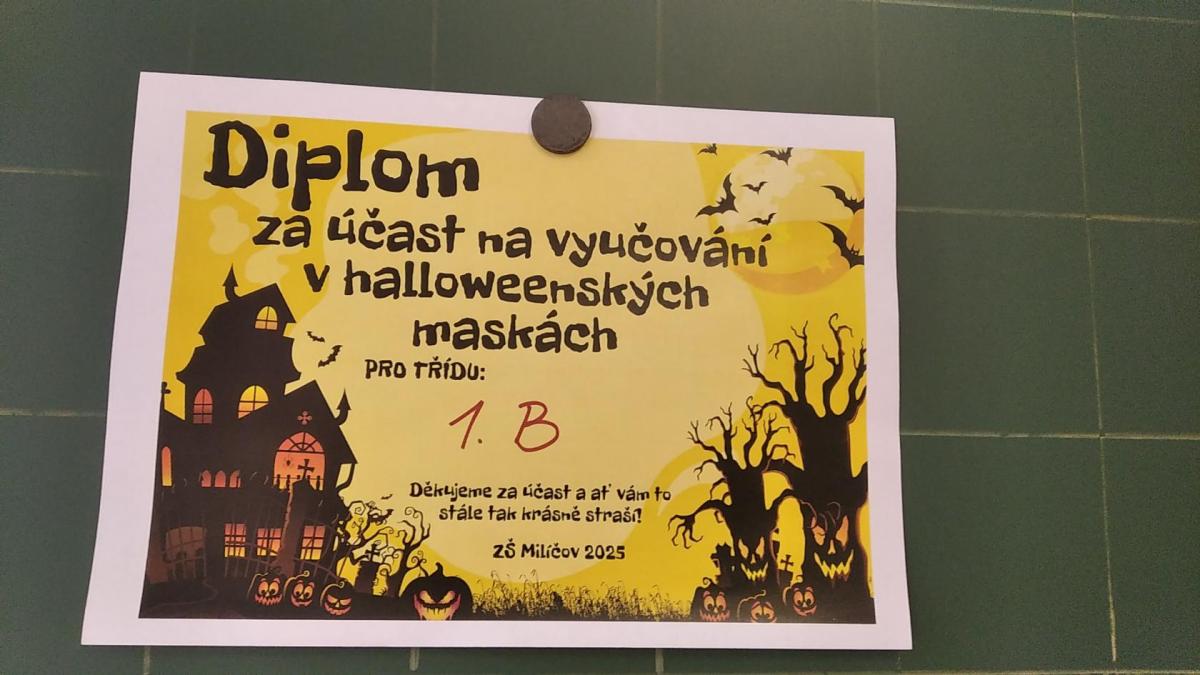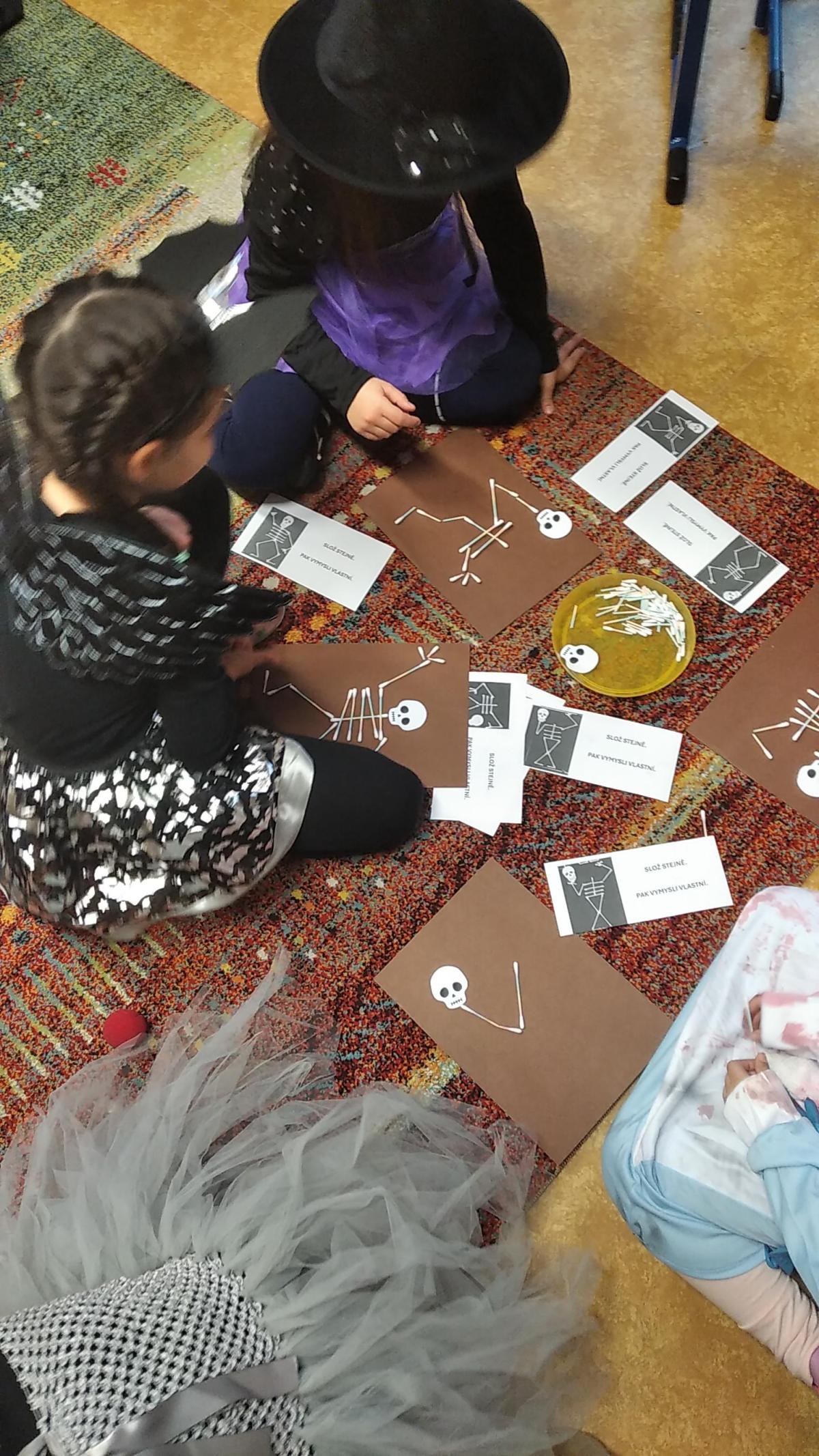 Ve čtvrtek jsme plnili úkoly, které pro všechny prvňáky připravily třídní paní učitelky. Celý den nás provázely kostry – ve třídě poblikávala lebka Tobiáš a někteří na sobě měli slušivé „kostří“ převleky. Kromě jiných úkolů jsme si společně složili velkou skládanku lidské kostry, každý si také sestavil malého stylizovaného kostlivce tančícího strašidelný tanec. Společně jsme také pojmenovali a na vlastním těle našli všechny hlavní kosti.