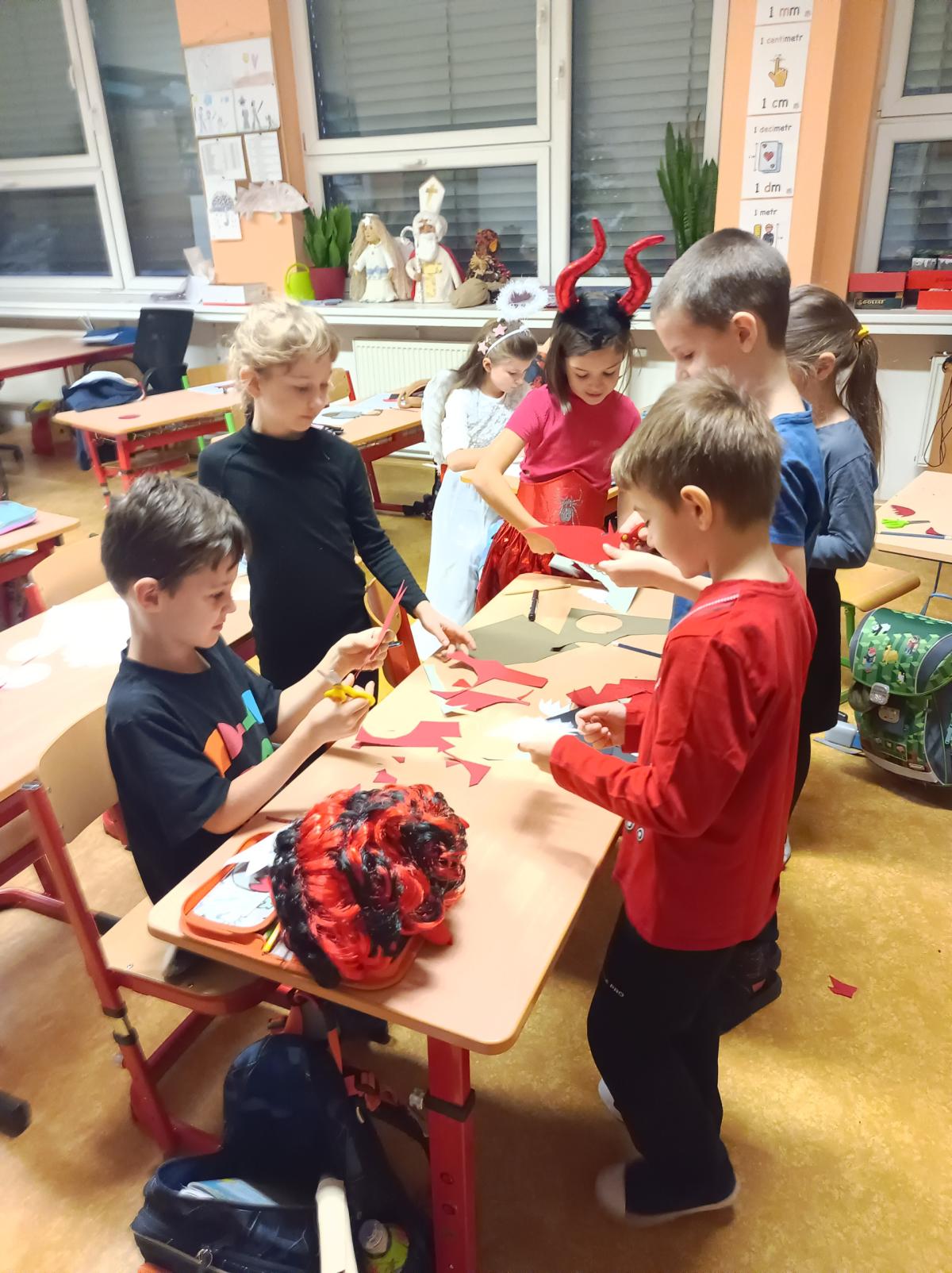 5. prosince navštívil naši školu Mikuláš. Samozřejmě nepřišel sám. Nechyběli andělé ani čerti. Ti přinesli pekelnou listinu od samotného vládce pekel - Lucifera. Byla na ní napsaná jména těch, kteří se ve škole úplně nechovají podle pravidel. Ti také dostali od Mikuláše bramboru. Ostatní jsme dostali adventní kalendář, aby nám čekání na Ježíška sladce utíkalo. Naše hříšníky zachránila paní učitelka. Protože se do konce vyučování chovali pěkně a slíbili, že se budou snažit o zlepšení, budeme do Vánoc mlsat všichni. :)
