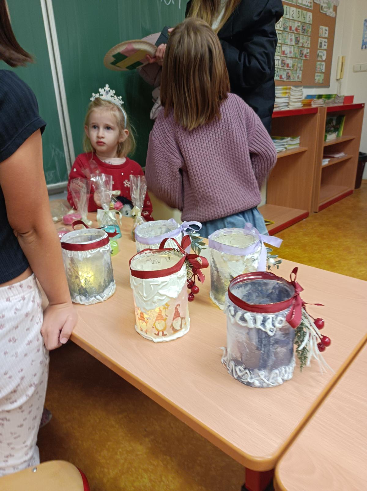 Ve středu 10. 12. proběhl v naší škole už tradiční Vánoční jarmark. V tento sváteční den zavítalo mezi nás mnoho rodičů, prarodičů i ostatních příbuzných. Ale přišli i lidé jen tak. Na odpoledne jsme se moc těšili. Před příchodem návštěvníků bylo potřeba připravit prodejní místo, vystavit a nacenit výrobky, připravit pokladničku.Trošku nás svírala nervozita, ale při příchodu prvních hostů byla ta tam. Byli jsme plní očekávání a zvědavosti, jak se budou naše výrobky líbit. A líbily se! Téměř vše našlo svého kupce. Na nás pak čekalo příjemné překvapení v pokladničce. Díky vám, nám paní učitelka přidala do třídního fondu 2 860,- Kč. Všem moc děkujeme. :)