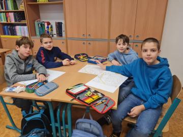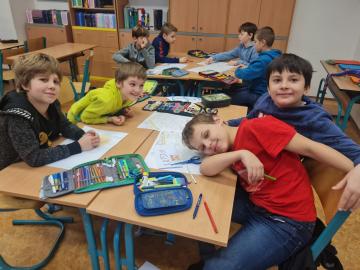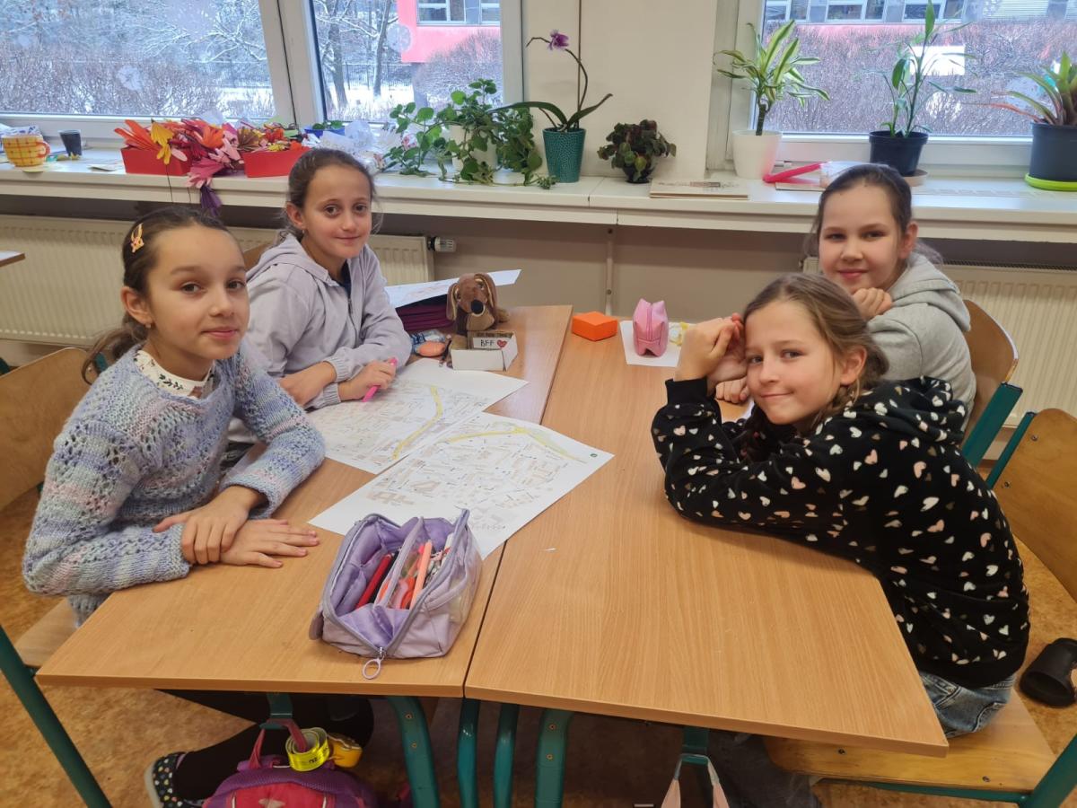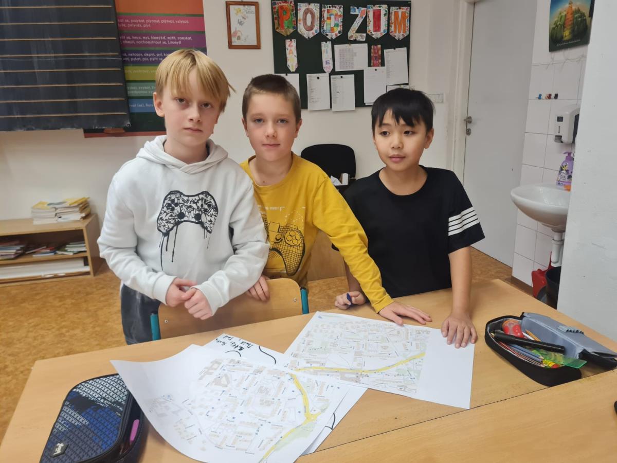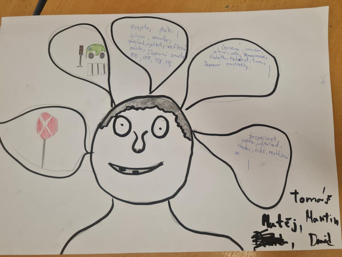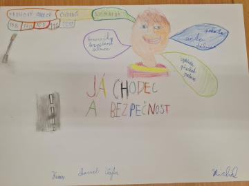 Děti vytvářejí myšlenkovou mapu na téma "Já chodec a bezpečnost"