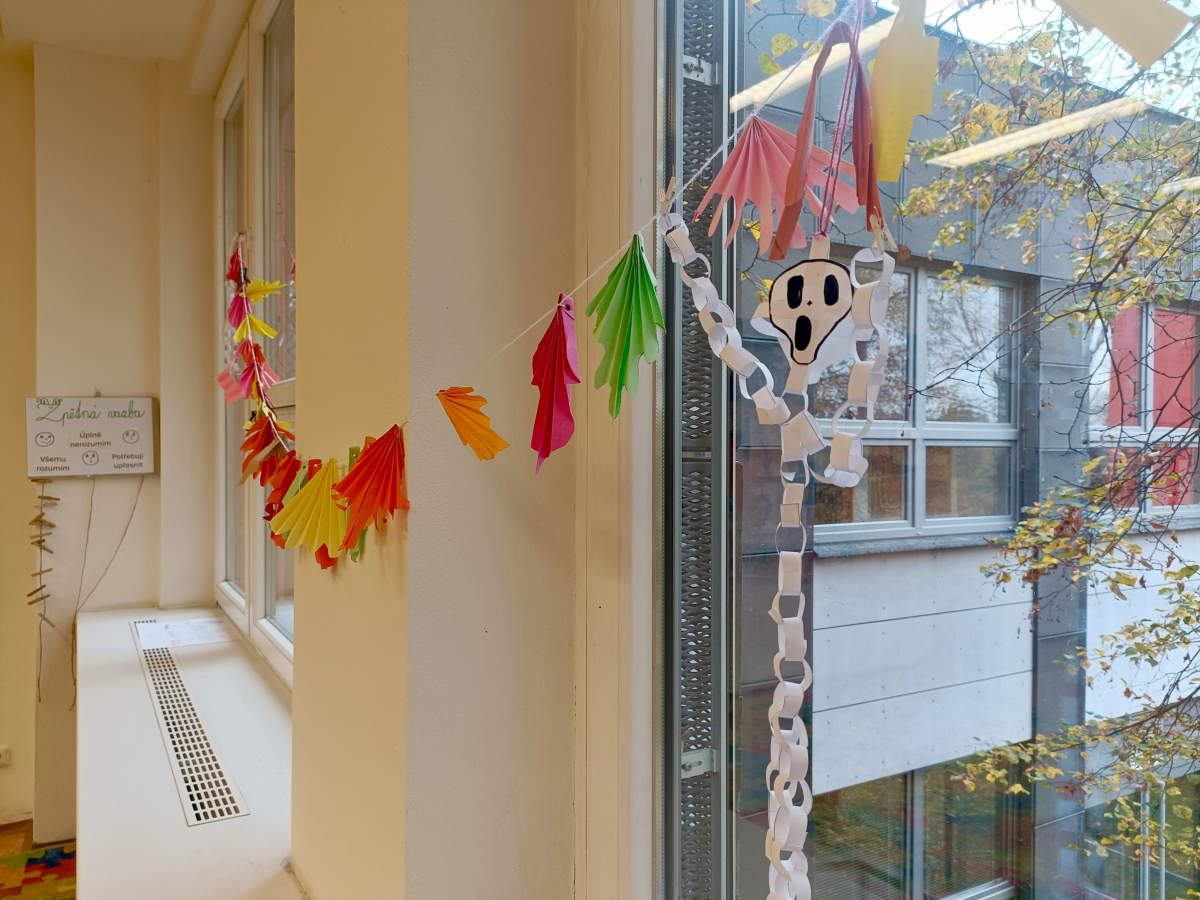 Na zdech se houpají girlandy z podzimních listů, třpytí se mozaiky halloweenských dýní,