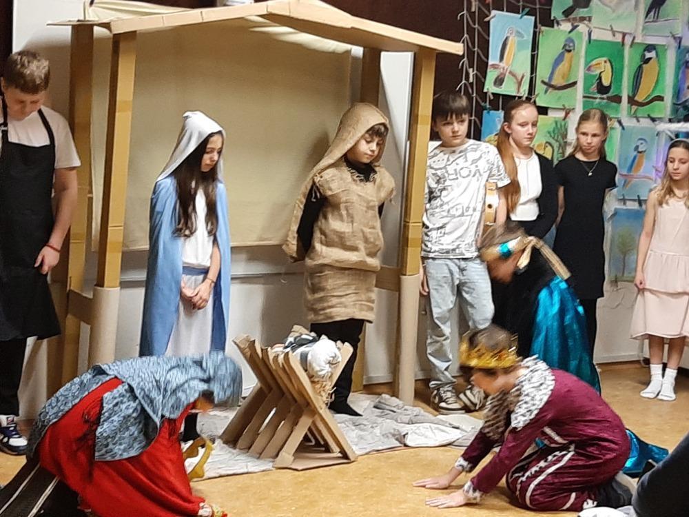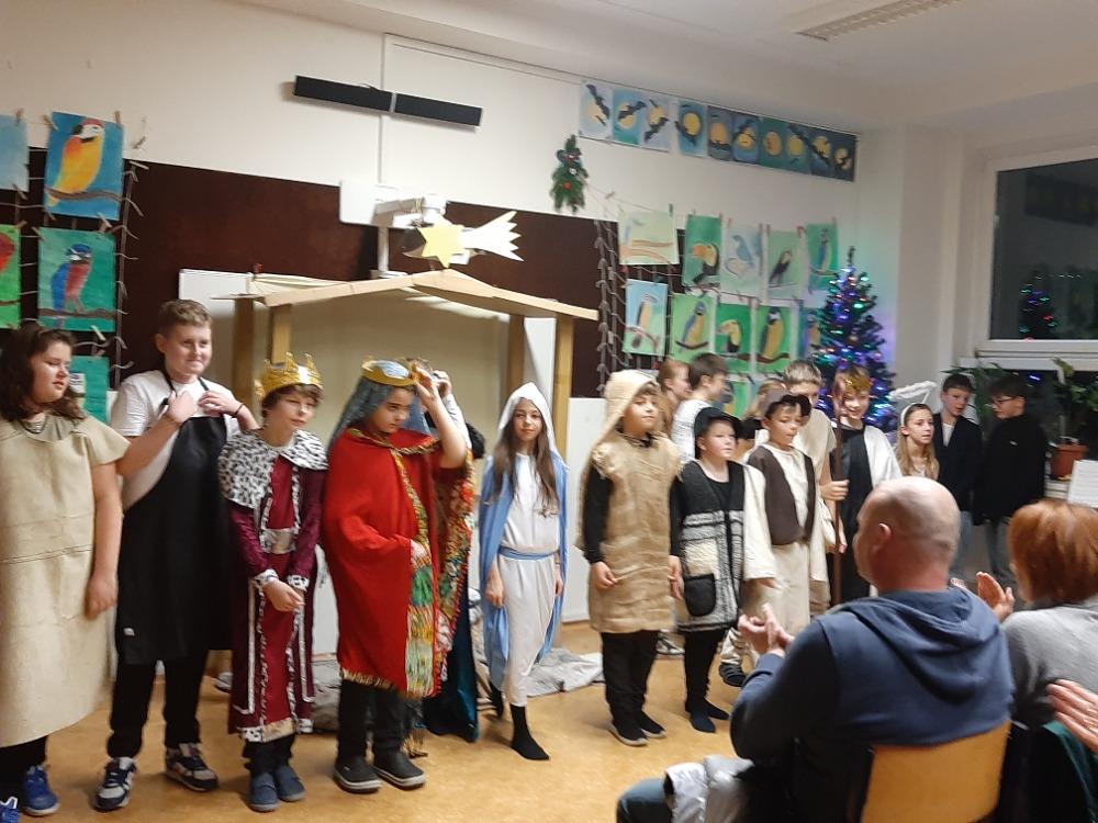 Žáci 5.B s paní učitelkou Rohanovou krásně zahráli Betlémský příběh i s tradičními koledami v rámci tradičního školního jarmarku a připomněli dětem i rodičům, že Vánoce nejsou jen o nakupování a dobrém jídle.