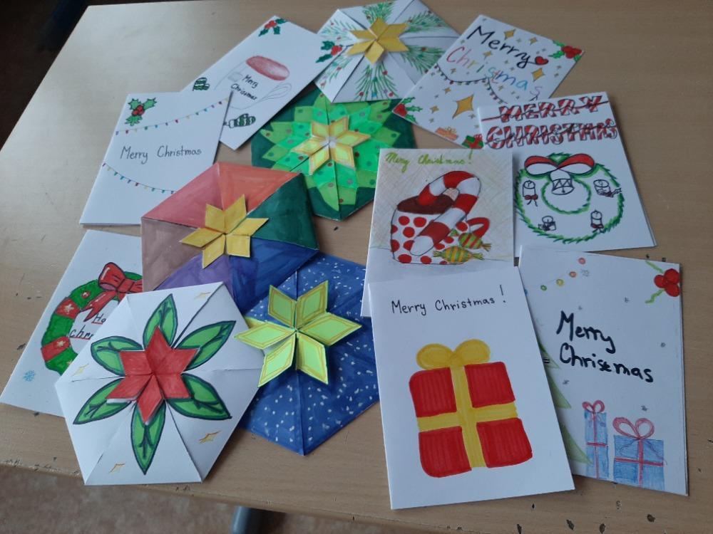 Poštou nám již dorazila Christmas Cards ze španělské Granady (Andalusie) a na webu Etwinningu se mají brzy objevit naskenované Door Hangers z ostatních škol a anglické prezentace o jejich vánočních tradicích, které se ukážeme na hodinách angličtiny. Připravujeme i online setkání, které by mělo proběhnout příští týden, kdy si i společně zazpíváme vánoční písně každého státu, nějaké i anglicky.