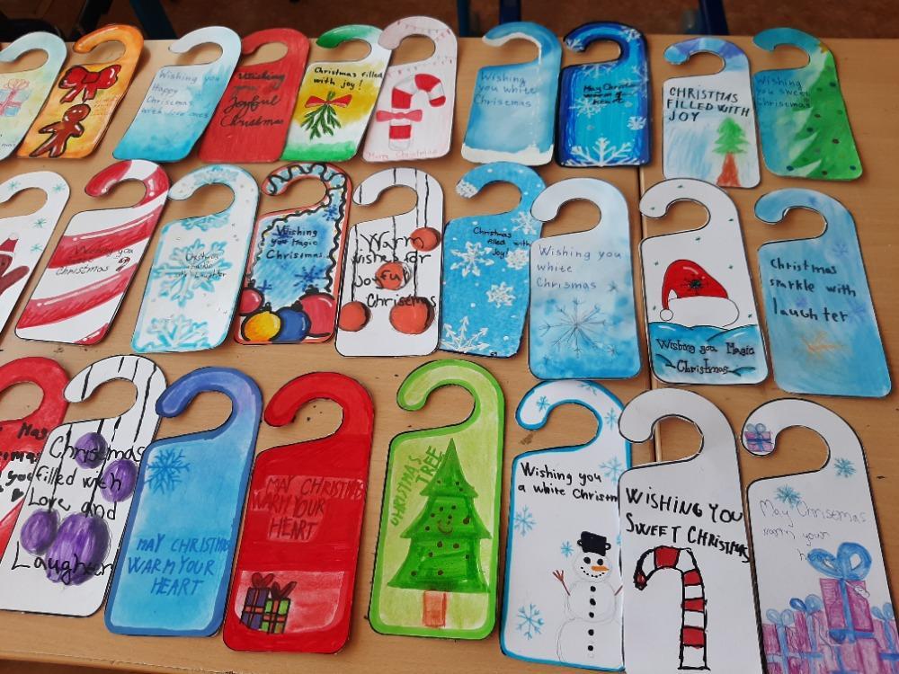 Součástí jednoho z projektů bylo i vytvořit Quiz v angličtině o své zemi a škole v podobě prezentace a vědomostní hry v podobě Kahootu a ozdobné Door hangers (visačky na dveře) s vánočními přáními. O vánočních tradicích jsme s dětmi vytvořili zajímavou prezentaci za pomocí programu Canva a vědomostní hru Kahoot. Dále jsme s dětmi poslaly krásně vyzdobená vánoční přání do Španělska a Polska.