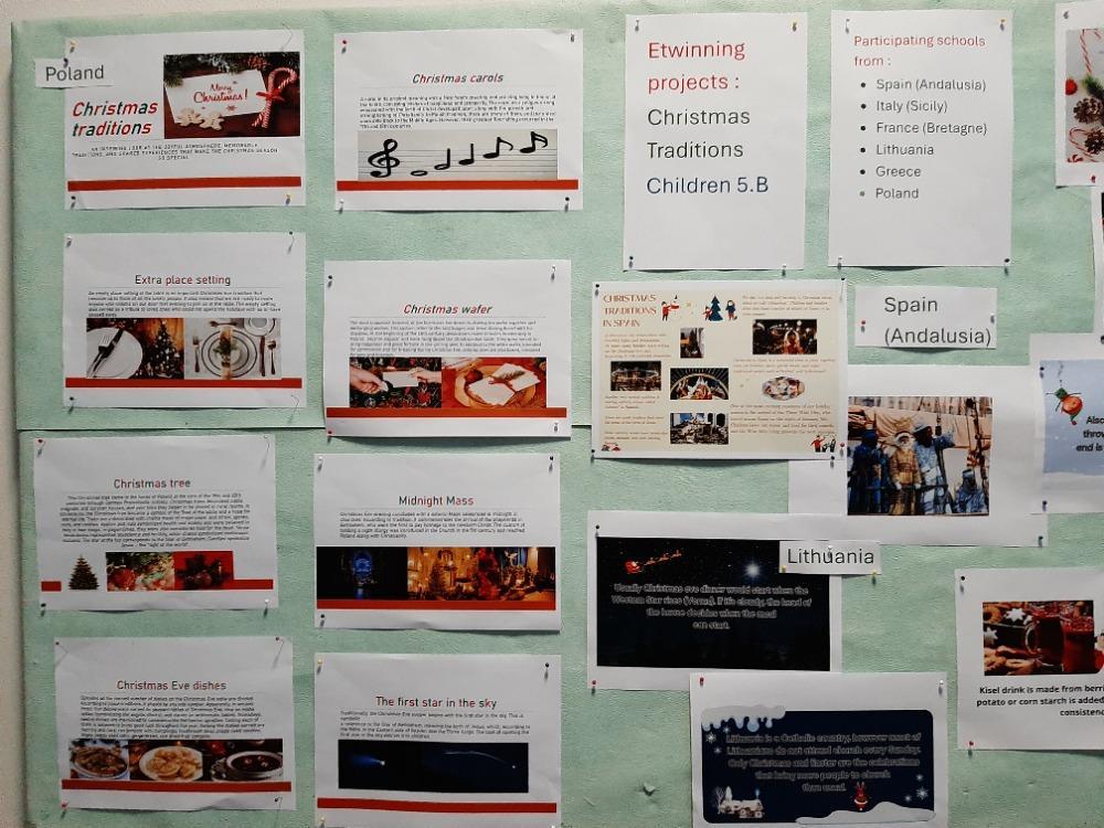 V letošním roce se naše třída 5.B účastní dvou mezinárodních projektů v rámci eTwinningu na téma Christmas Traditions (Vánoční zvyky a přání). Do těchto projektů se v rámci výuky angličtiny zapojily 2 školy ze Španělska, Itálie, Francie, Litvy, Řecka a 2 školy z Polska.