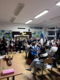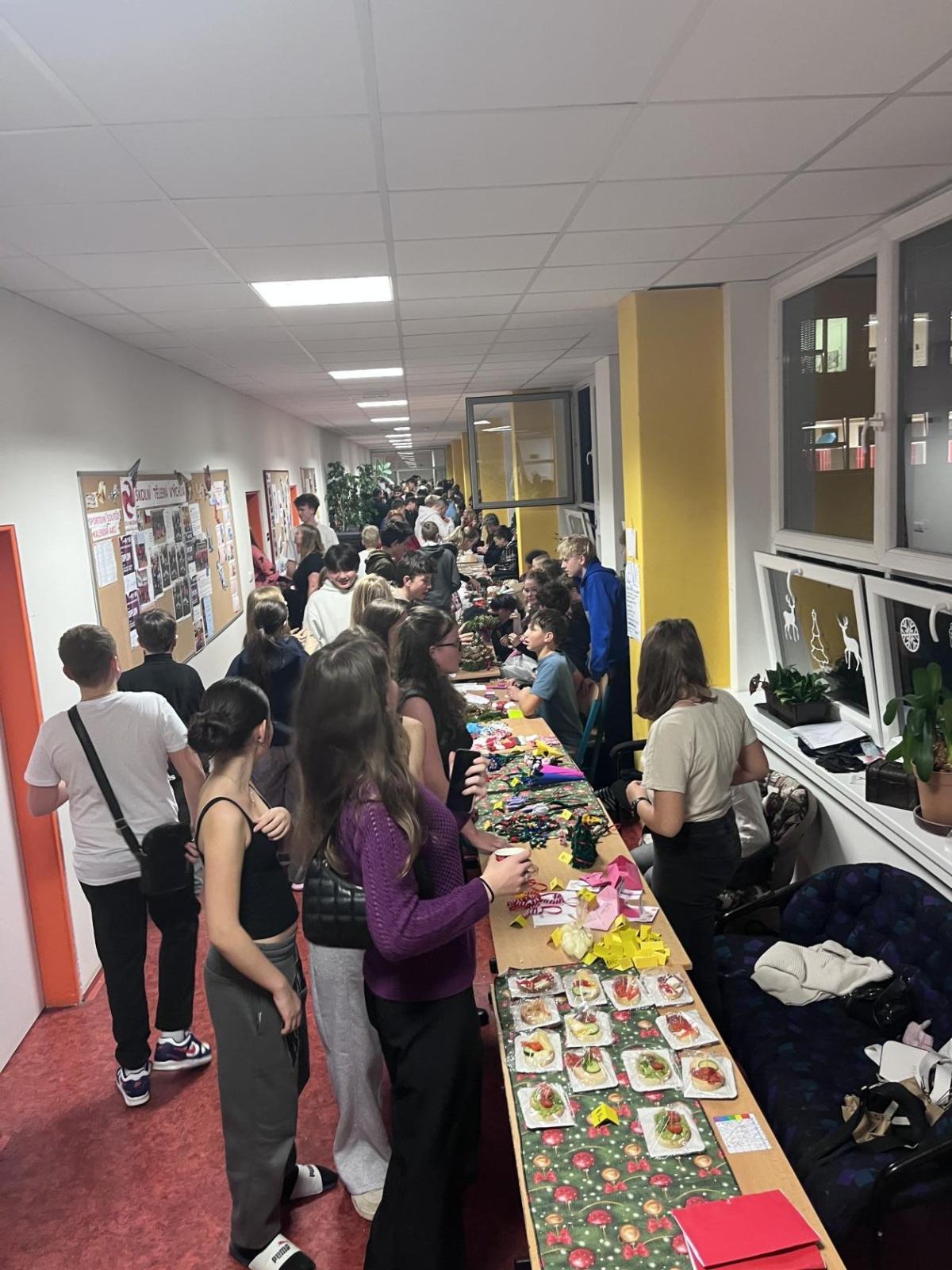 Po úvodním zpěvu se návštěvníci mohli vydat do připravených stánků jednotlivých tříd. Žáci zde nabízeli své ručně vyráběné dekorace, drobné dárky i různé dobroty – například wafle, popcorn či hranolky. Zájem byl opravdu velký a školní chodby se zaplnily do posledního místa.