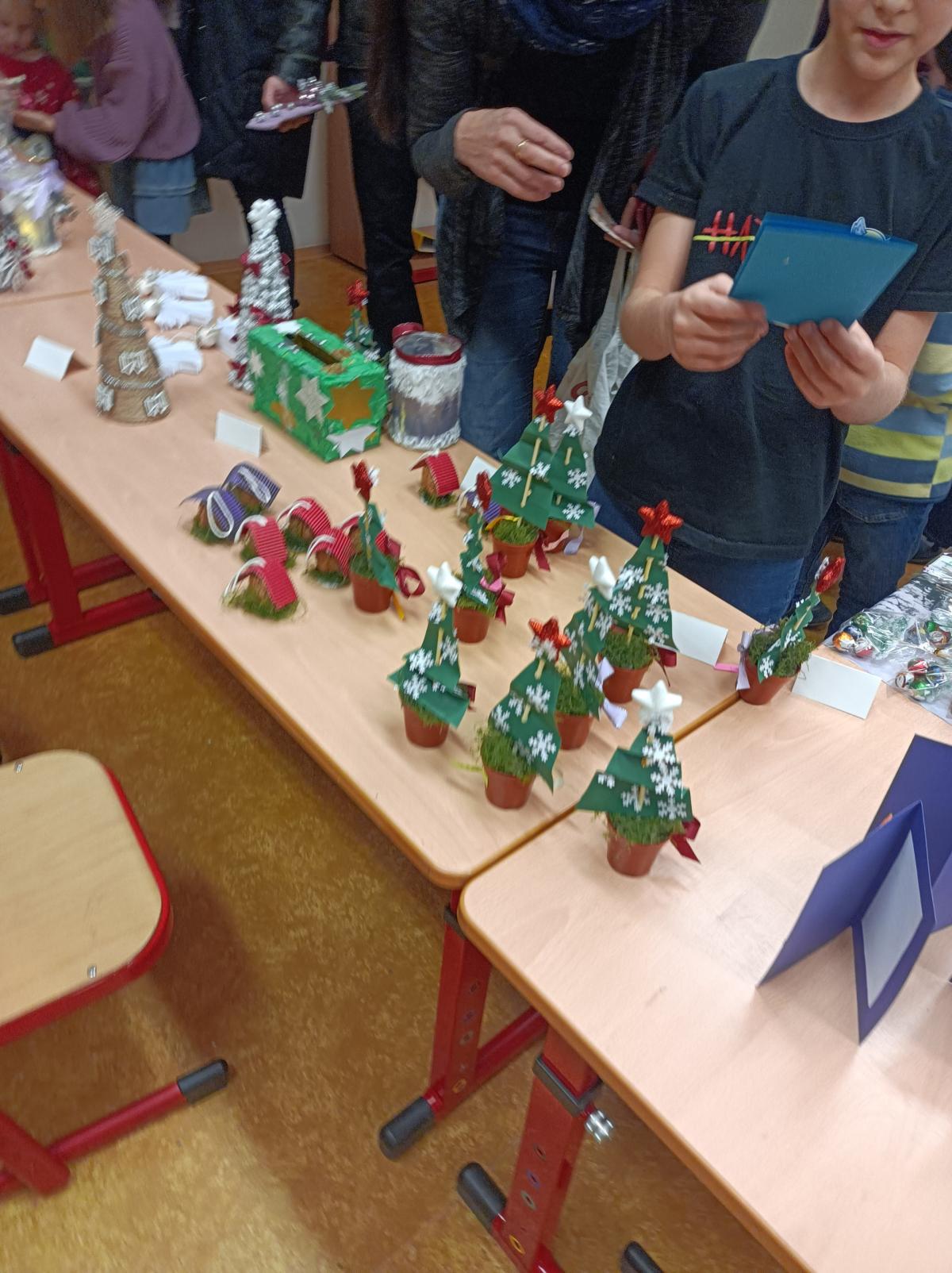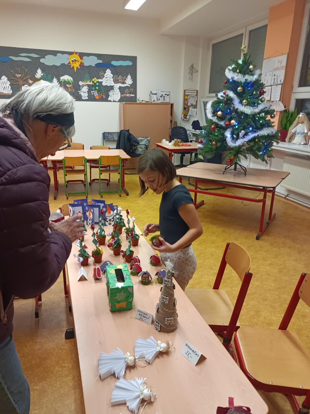 Ve středu 10. 12. proběhl v naší škole už tradiční Vánoční jarmark. V tento sváteční den zavítalo mezi nás mnoho rodičů, prarodičů i ostatních příbuzných. Ale přišli i lidé jen tak. Na odpoledne jsme se moc těšili. Před příchodem návštěvníků bylo potřeba připravit prodejní místo, vystavit a nacenit výrobky, připravit pokladničku.Trošku nás svírala nervozita, ale při příchodu prvních hostů byla ta tam. Byli jsme plní očekávání a zvědavosti, jak se budou naše výrobky líbit. A líbily se! Téměř vše našlo svého kupce. Na nás pak čekalo příjemné překvapení v pokladničce. Díky vám, nám paní učitelka přidala do třídního fondu 2 860,- Kč. Všem moc děkujeme. :)