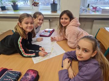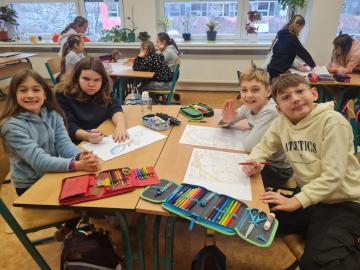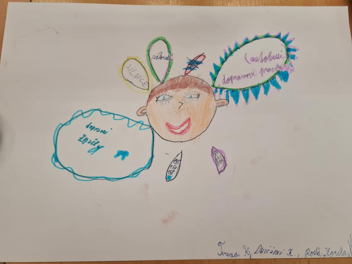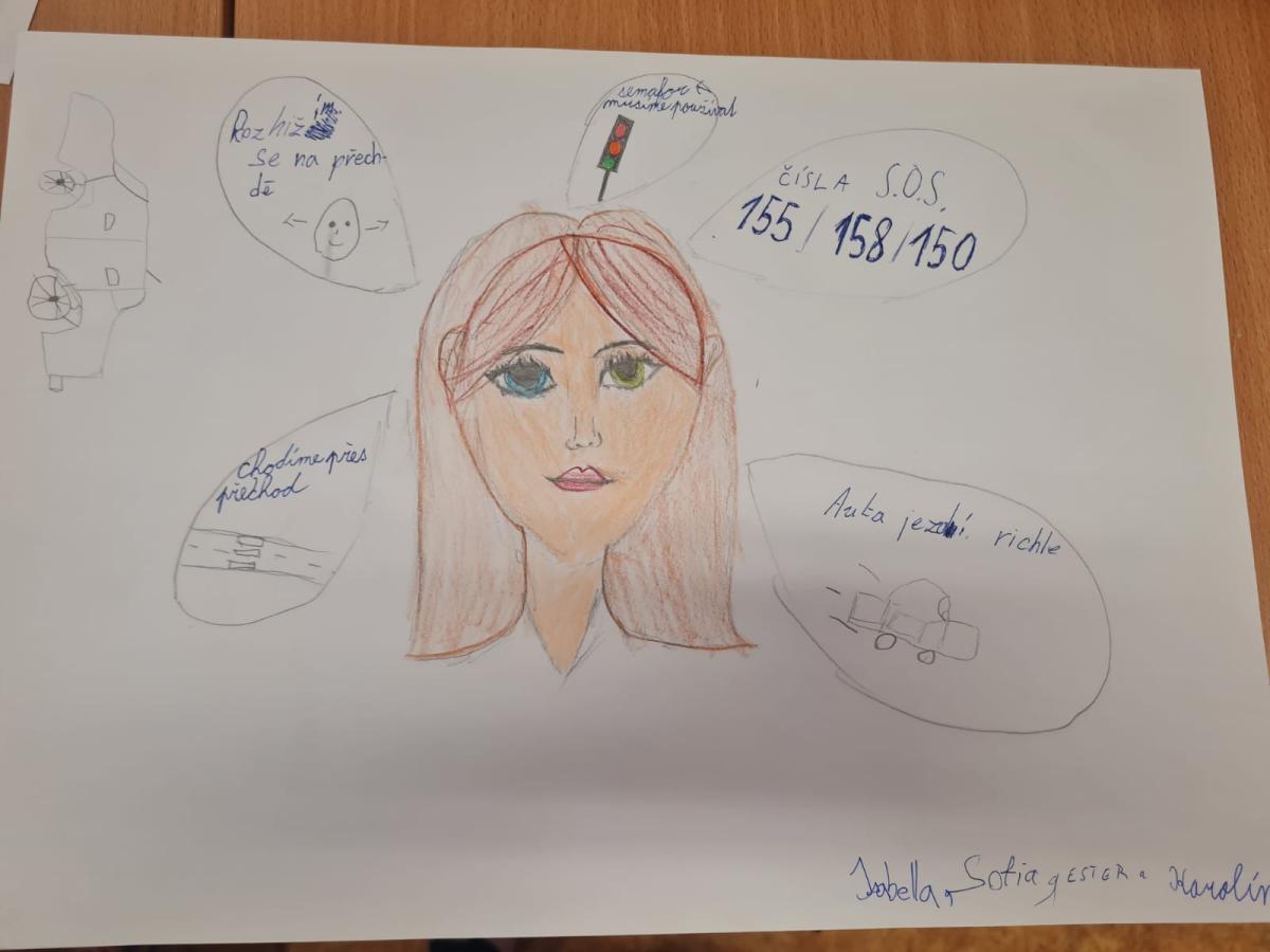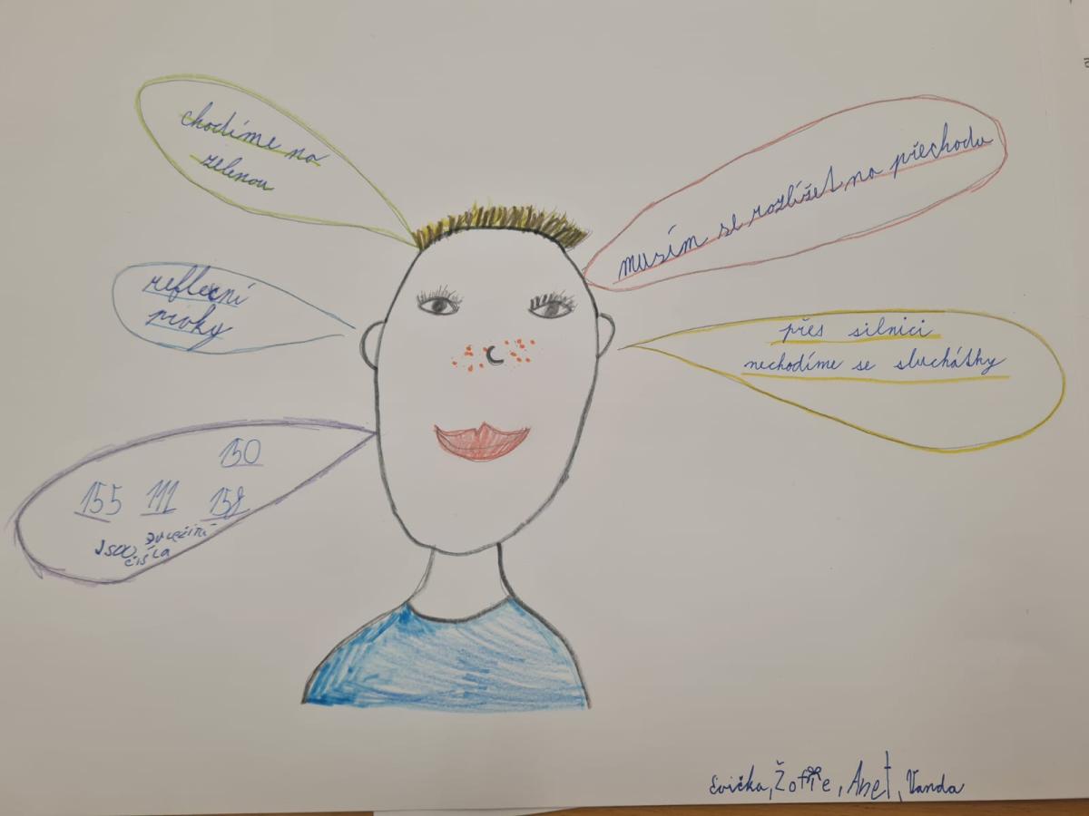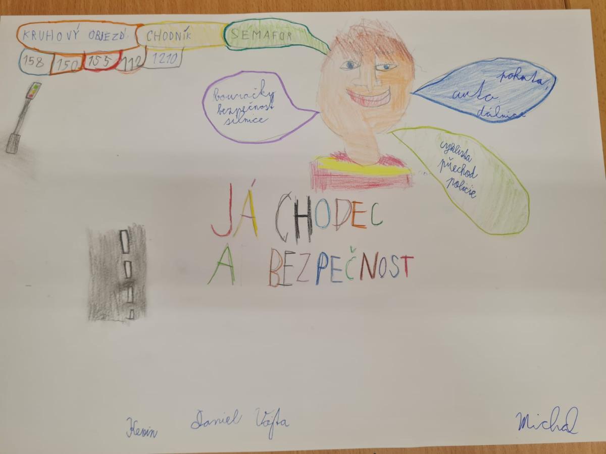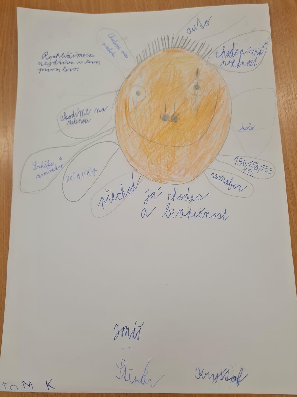 Děti vytvářejí myšlenkovou mapu na téma "Já chodec a bezpečnost"