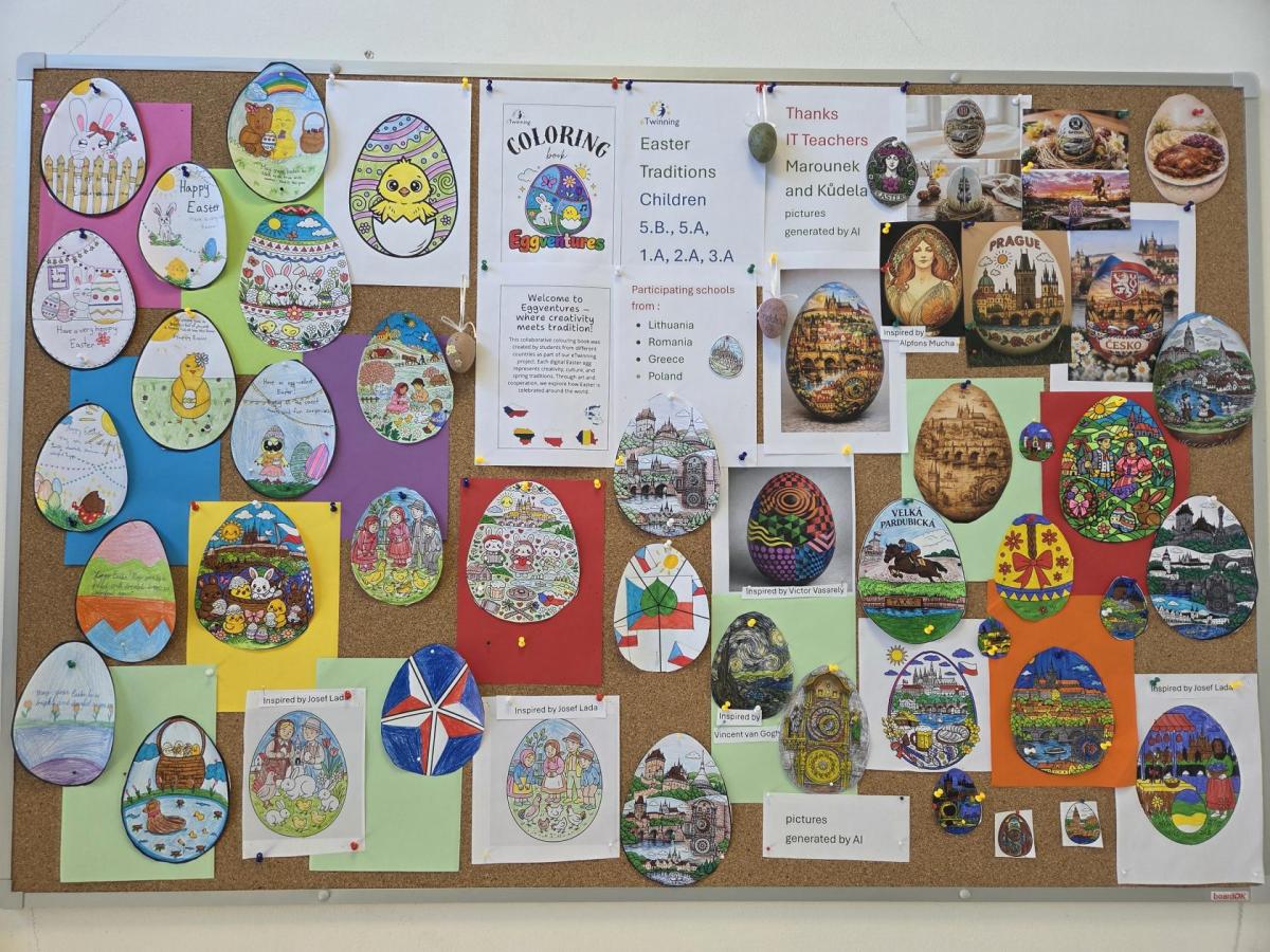 Děti z mé anglické skupiny se zapojily do dvou Velikonočních eTwinningových mezinárodních projektů se školami z Litvy, Itálie, Španělska, Řecka, Polska a Rumunska zaměřených na Velikonoční tradice, velikonoční přání v angličtině a zdobení (tvoření) velikonočních vajíček za pomocí AI (umělé inteligence).