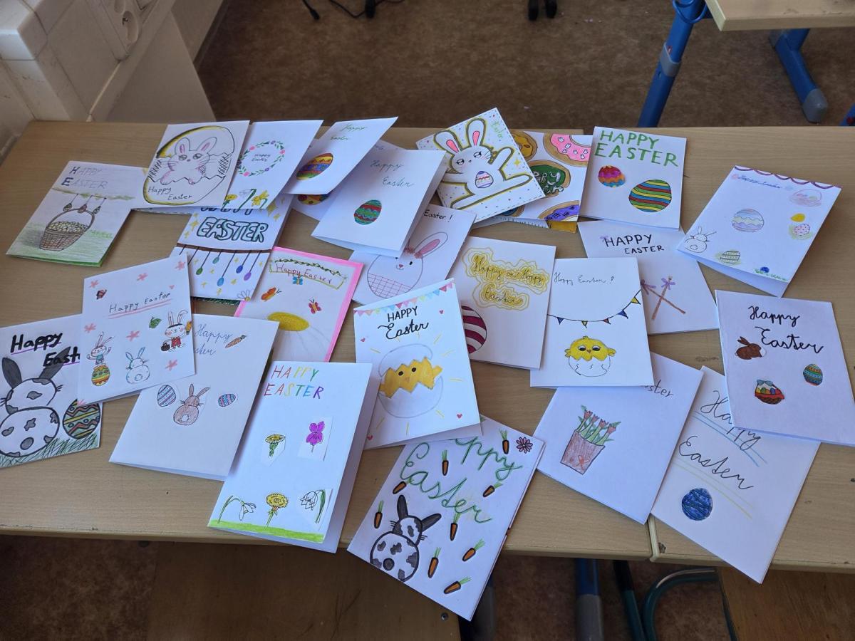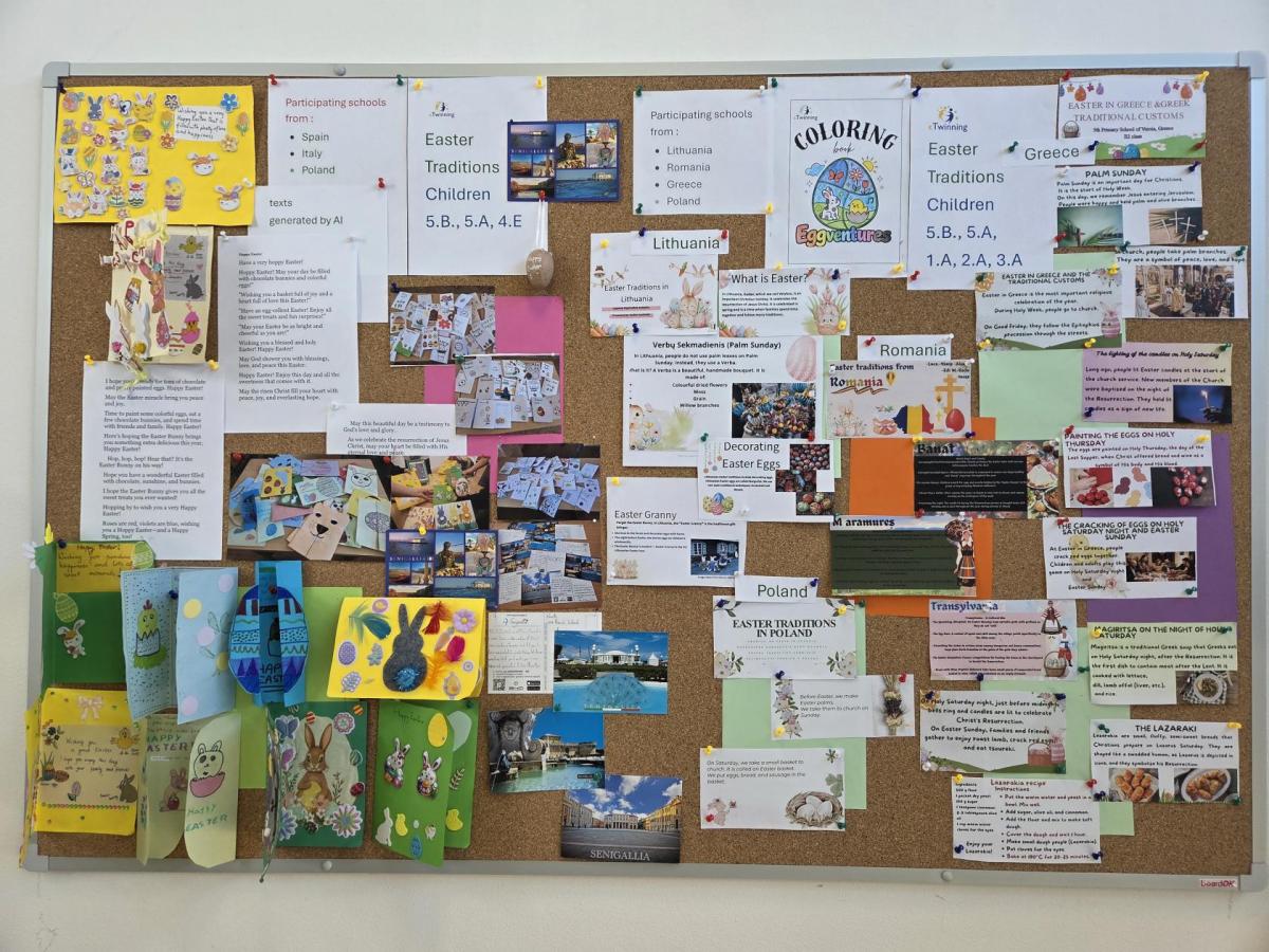 Děti z mé anglické skupiny se zapojily do dvou velikonočních eTwinningových mezinárodních projektů se školami z Litvy, Itálie, Španělska, Řecka, Polska a Rumunska zaměřených na velikonoční tradice, velikonoční přání v angličtině a zdobení (tvoření) velikonočních vajíček za pomocí AI (umělé inteligence).
