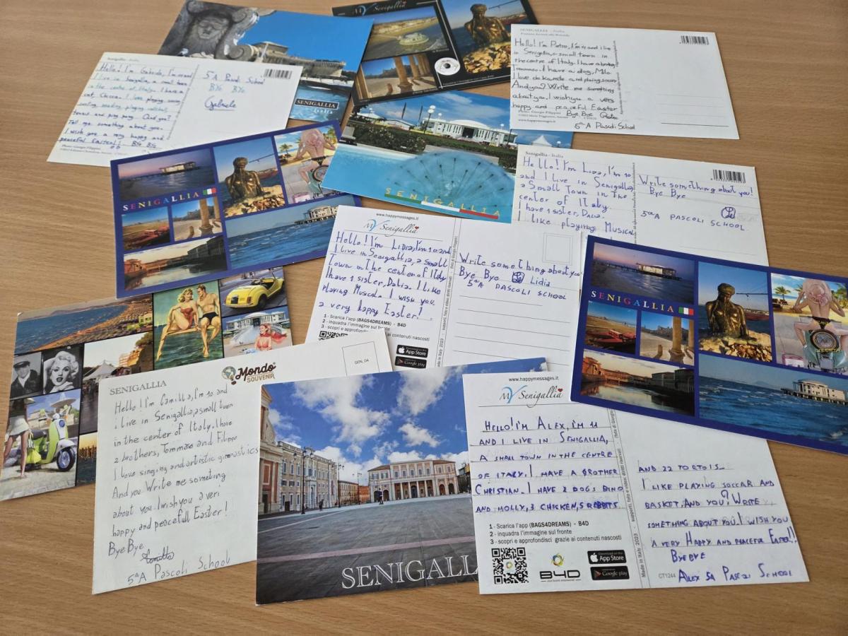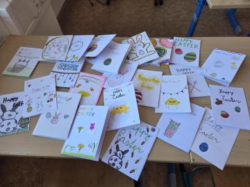 No a ještě dostaly přání od dětí ze Španělska, Itálie nebo Polska, která nám přišla na oplátku poštou do školy.