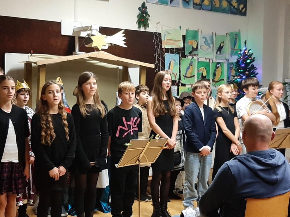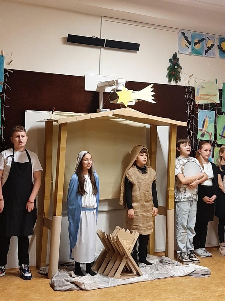 Žáci 5.B s paní učitelkou Rohanovou krásně zahráli Betlémský příběh i s tradičními koledami v rámci tradičního školního jarmarku a připomněli dětem i rodičům, že Vánoce nejsou jen o nakupování a dobrém jídle.